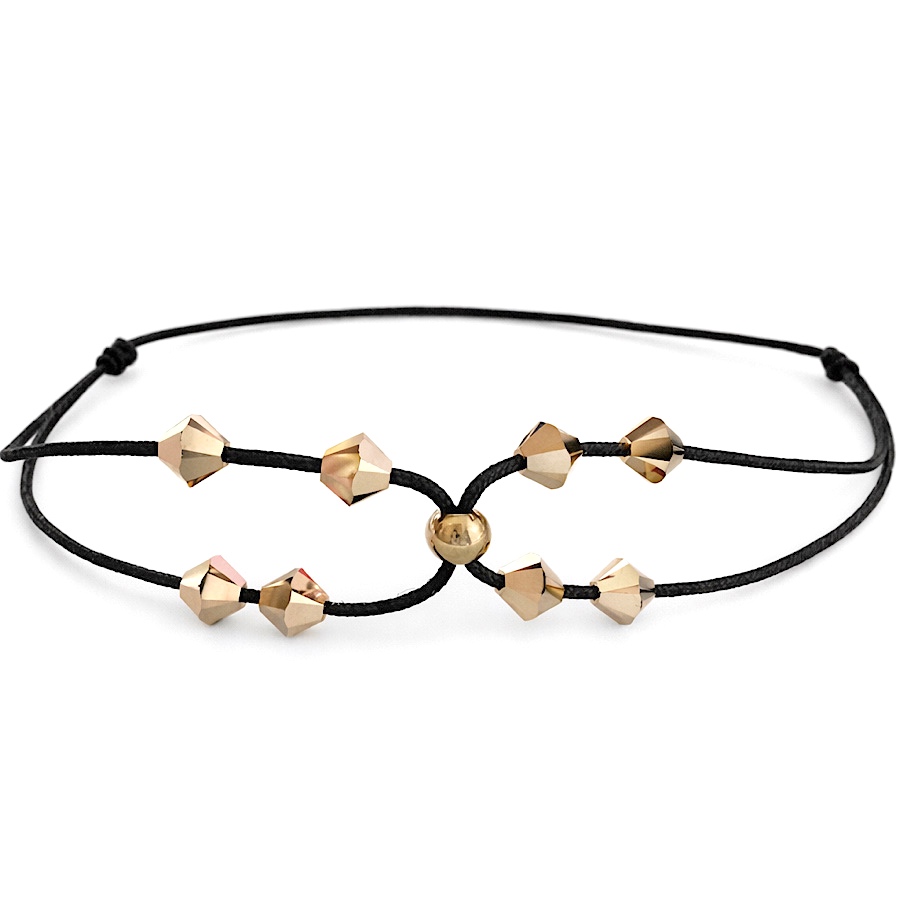 Materiál: ocelová kuička, bavlněná šňůrka a xiliony Swarovski.