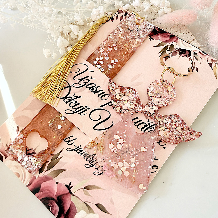 Kvetoucí třpytivá sada se záložkou-andílek Paní učitelce -S3