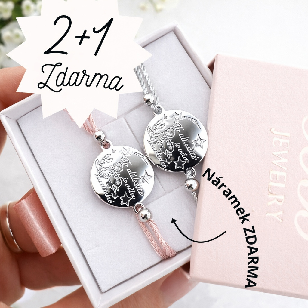 Akce 2+1 zdarma – třetí náramek máte od nás jako dárek. NAKUPTE JAKÉKOLI DVA ŠPERKY Z NAŠÍ NABÍDKY KATEGORIE CHLAPEC A LIŠKA,ANEBO ŠŇŮRKOVÉ NÁRAMKY V MIN.HODNOTĚ 700,- A VLOŽTE SI TENTO ŠPERK DO KOŠÍKU K OBJEDNÁVCE.